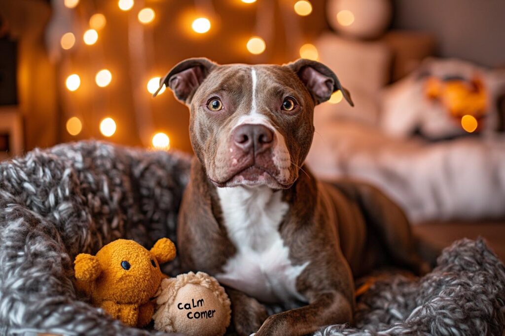 Another great idea is to designate a quiet area in your home. This could be a specific room or even just a corner with a comfortable bed and some low-key lighting. Creating this space can give your pitbull a sanctuary to retreat to when things get a bit too hectic.